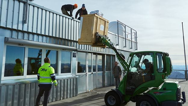 DSV bietet für besonders sensible Transporte den sogenannten „White Glove Delivery Service“, bei dem zusätzliches Personal zum Einsatz kommt und je nach Anforderung Dienstleistungen wie Montage-Service oder Verpackungsrücknahme ergänzend genutzt werden können. „Im Fall der Lieferung auf die Zugspitze haben wir zwei Sprinter inklusive Hebebühne eingeplant, da im Gondelbereich eine Höhenbeschränkung für Fahrzeuge gilt“, erläutert Dennis Kessler. Um den Besucherverkehr nicht zu beeinträchtigen, erfolgte der Transport der 1.430 kg schweren Messanlage früh morgens mit der ersten Gondelfahrt um 07:15 Uhr. „Für die Strecke innerhalb der Gipfelanlage haben wir die großen Kisten noch einmal separat mit Transporthilfsmitteln unterbaut, um sie in den Aufzug verladen zu können. Aufgrund des begrenzten Innenbereichs wurde die sensible Messanlage gemeinsam mit den Technikern im Freien ausgepackt, um sie von dort aus schließlich ins Labor zu bringen. Zum Glück hat das Wetter mitgespielt“, sagt Kessler.