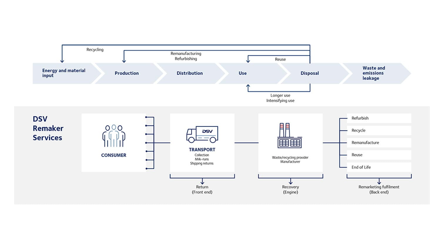 DSV Repair services is a one-stop-shop with services that make it easy to prolong product lifetimes and transform waste through initiatives such as recycling, reuse or remanufacturing. We can help you overcome the challenges involved with moving to a circular supply chain – from staying compliant with changing regulation on products and waste, to closing supply chain loops.