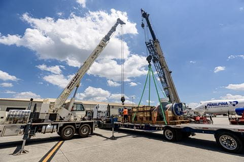 - May 22 – Panalpina aircraft arrives in HSV at 5:45 pm. The team unloaded and staged the Boeing 747-8F within an hour to begin loading the first heat exchanger. The only alternative aircraft would have been an Antonov AN-124, which would have come at a much higher cost than the Panalpina solution.